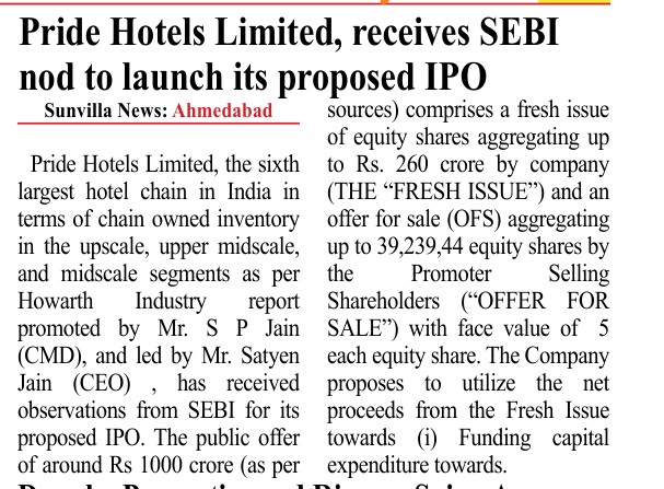 Pride Hotels Limited, the sixth largest hotel chain in India in terms of chain-owned inventory in the upscale, upper midscale,...
