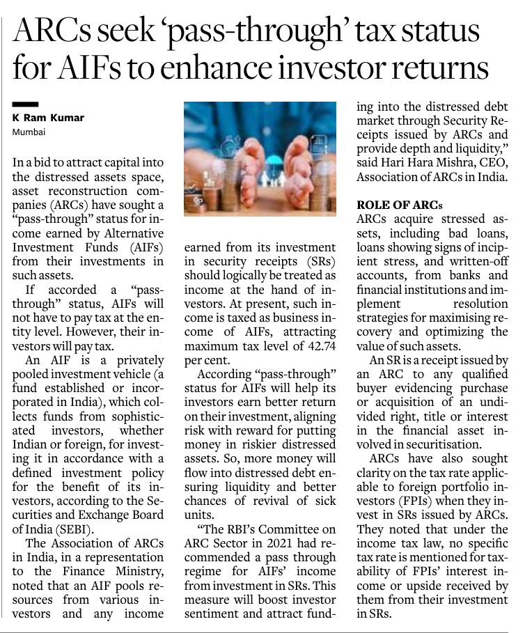 In a bid to attract capital into the distressed assets space, asset reconstruction companies (ARCs) have sought a “pass-through” status...