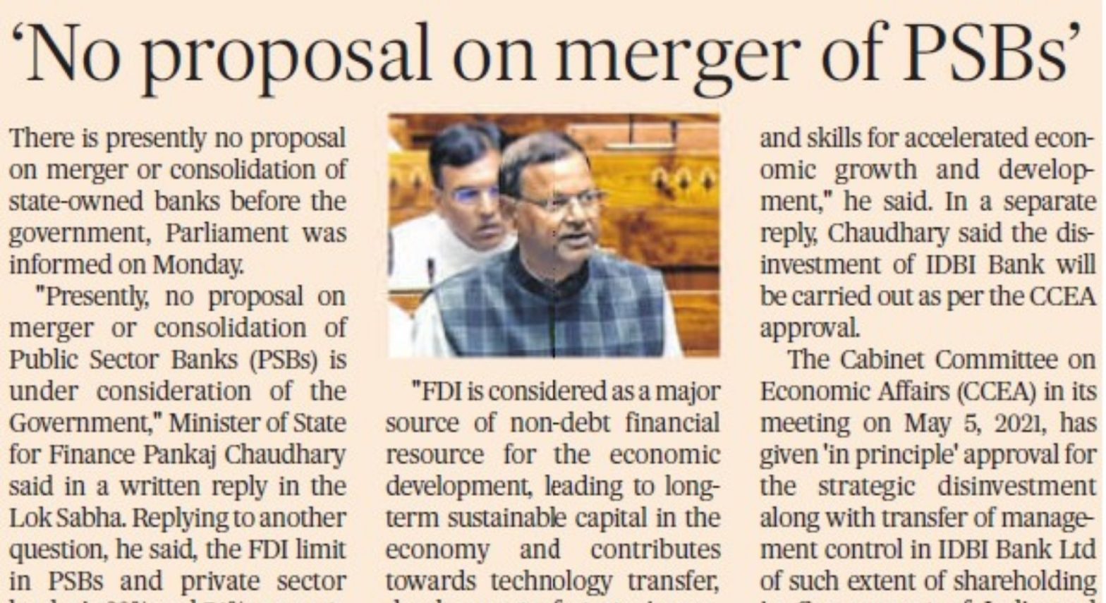 No PSU Bank Merger on the Table, Says Government—Policy Clarity Boosts Sector StabilityThe government has officially clarified that no merger or...