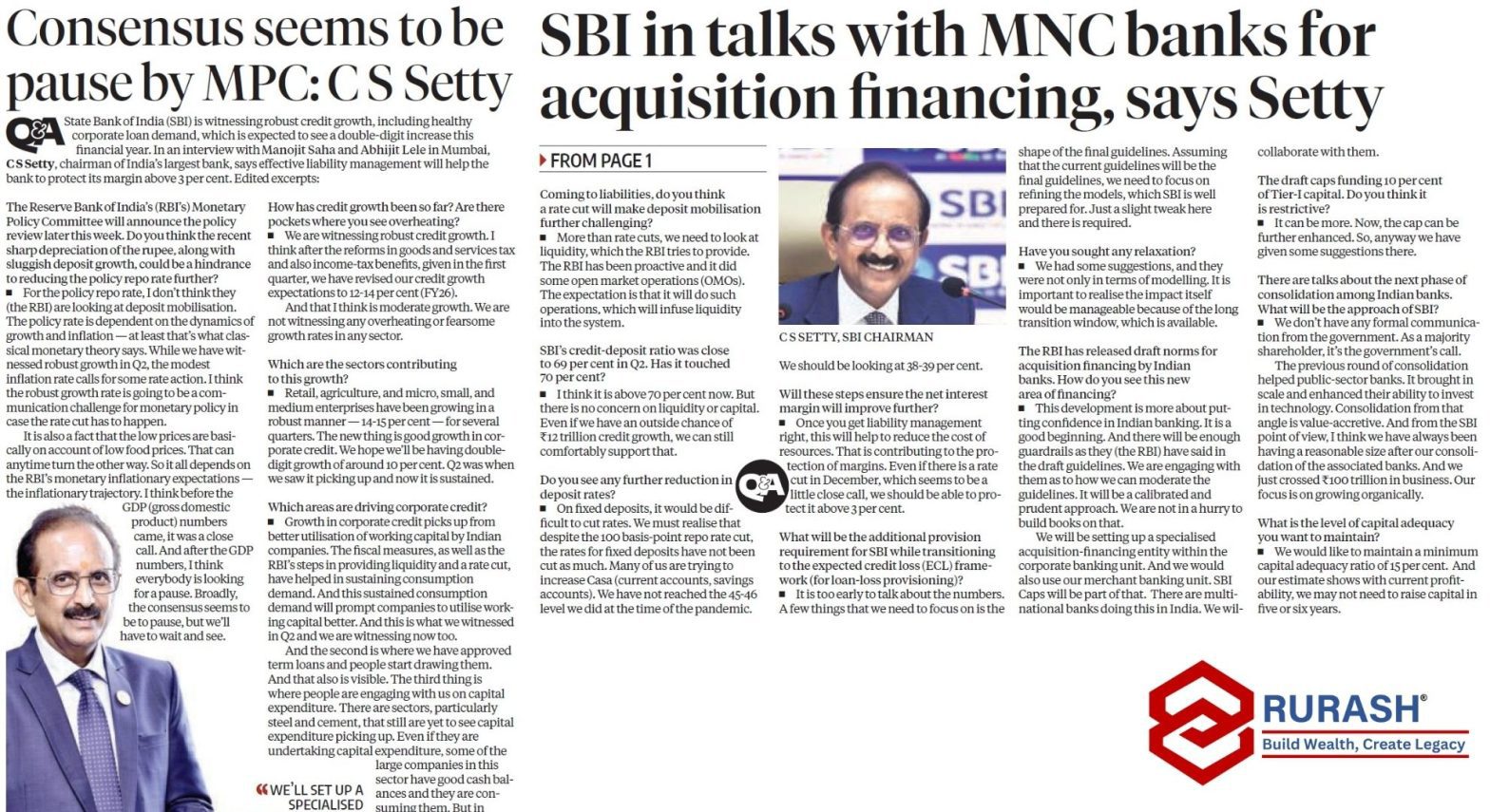MPC Rate Decision: Consensus Leans Toward a Pause, Says SBI Chairman C. S. SettyState Bank of India (SBI), India’s largest...