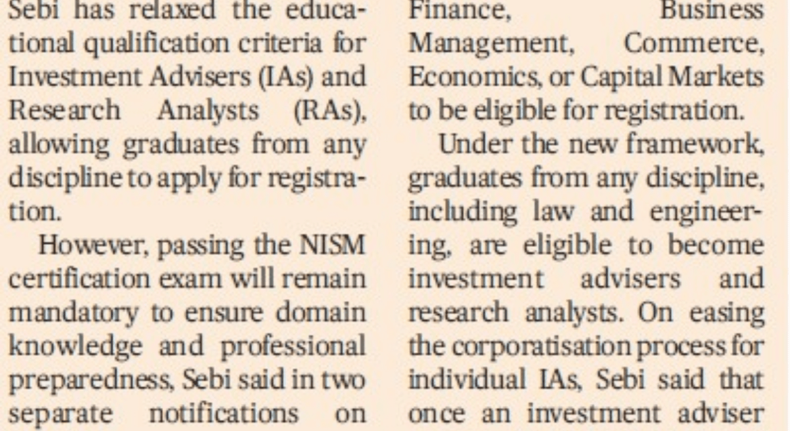 SEBI Eases Entry for Investment Advisers and Research Analysts: Graduates from Any Stream Now Eligible The Securities and Exchange Board of...
