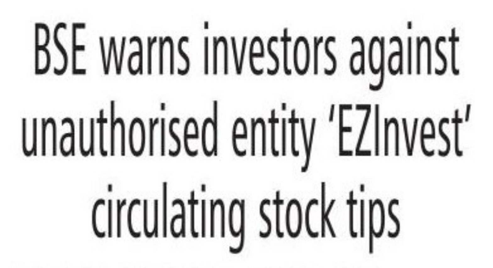 BSE Issues Investor Warning Against Unauthorized Entity EZInvest The Bombay Stock Exchange (BSE) has issued a public warning advising investors...