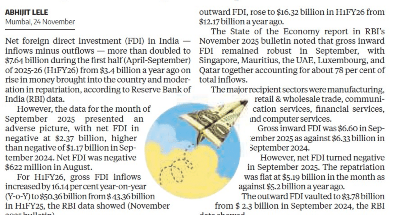 India's Net FDI Turns Negative for Second Consecutive Month in September Net Foreign Direct Investment (FDI) in India (inflows minus...