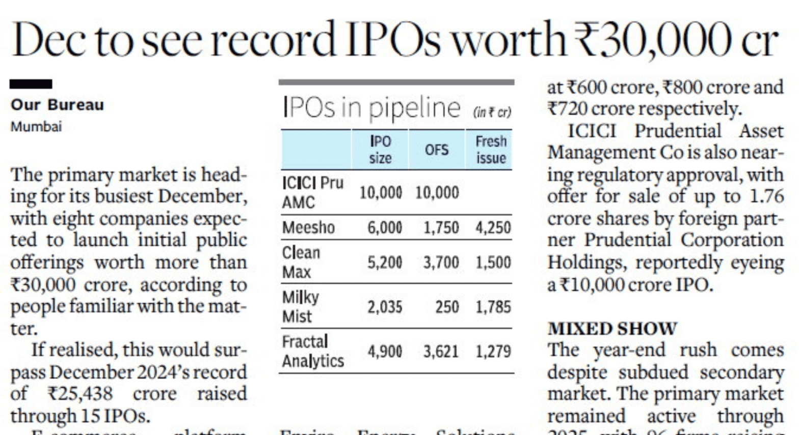 IPO Rush: December Set to Smash Records with ₹30,000 Crore Pipeline The Indian primary market is poised for its busiest December...