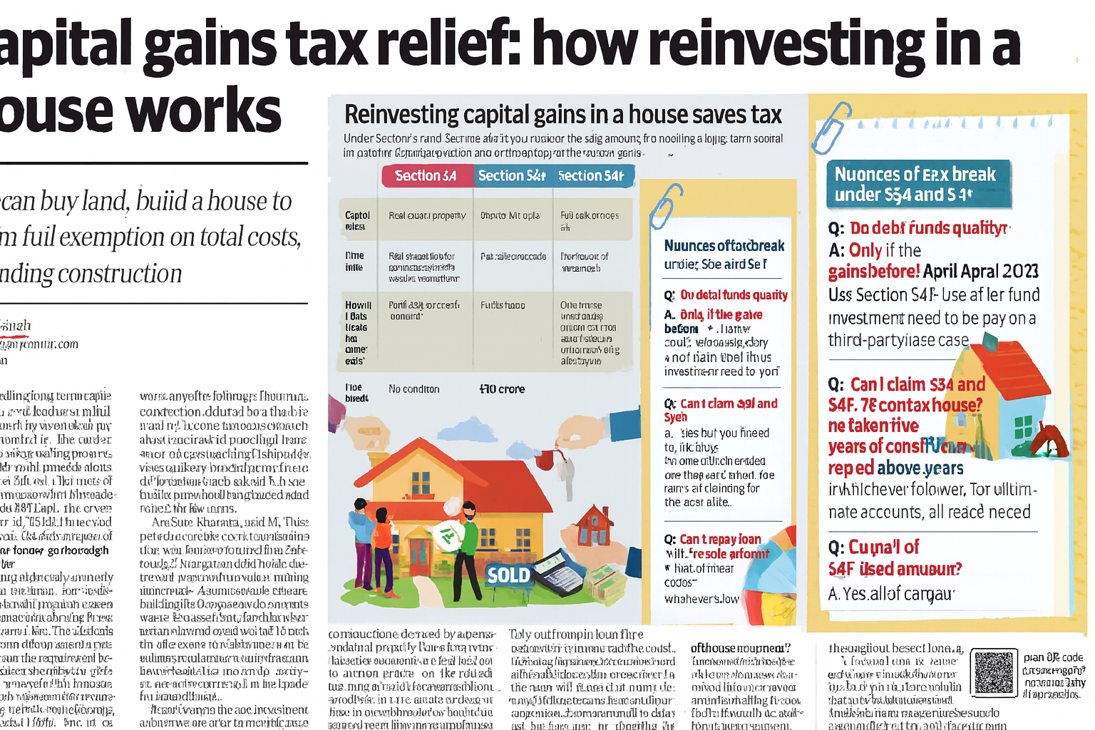 Section 54F extends this benefit to gains from other capital assets such as domestic and overseas shares, equity mutual funds, gold, or commercial property. But it comes with stricter rules: you must reinvest the full sale proceeds, not just the gains, and you cannot own more than one house at the time of sale. Under both sections, the exemption is withdrawn if the new house is sold within three years of purchase. There are other nuances too — in joint ownership, the exemption applies only to your share of the purchase or sale value. Mint explains how sections 54 and 54F work and how they can help reduce your tax burden.