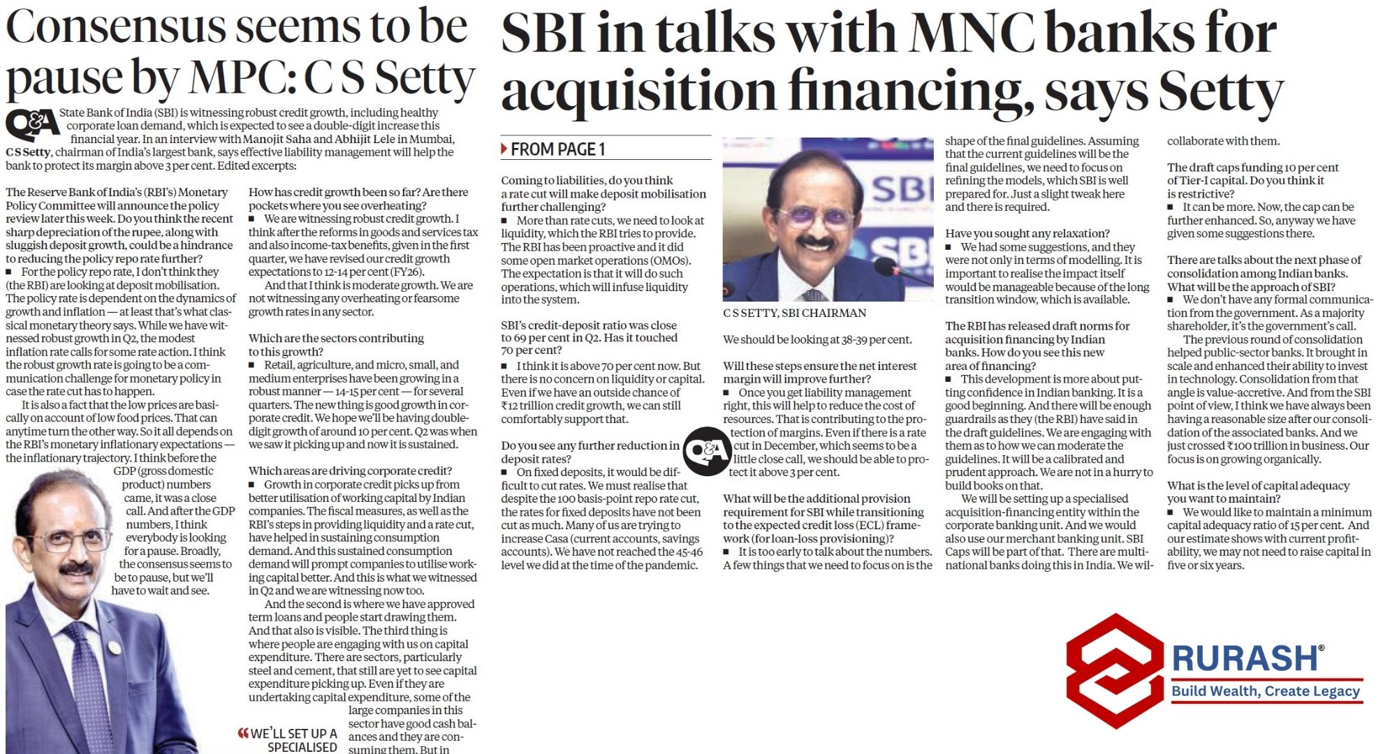 State Bank of India (SBI), India’s largest lender, continues to witness robust credit momentum, driven by strong retail demand, improving corporate utilization, and supportive policy measures. Speaking ahead of the RBI’s Monetary Policy Committee (MPC) announcement, Chairman C. S. Setty shared insights on interest rates, credit trends, liquidity, and the bank’s expansion strategy in a detailed interview.