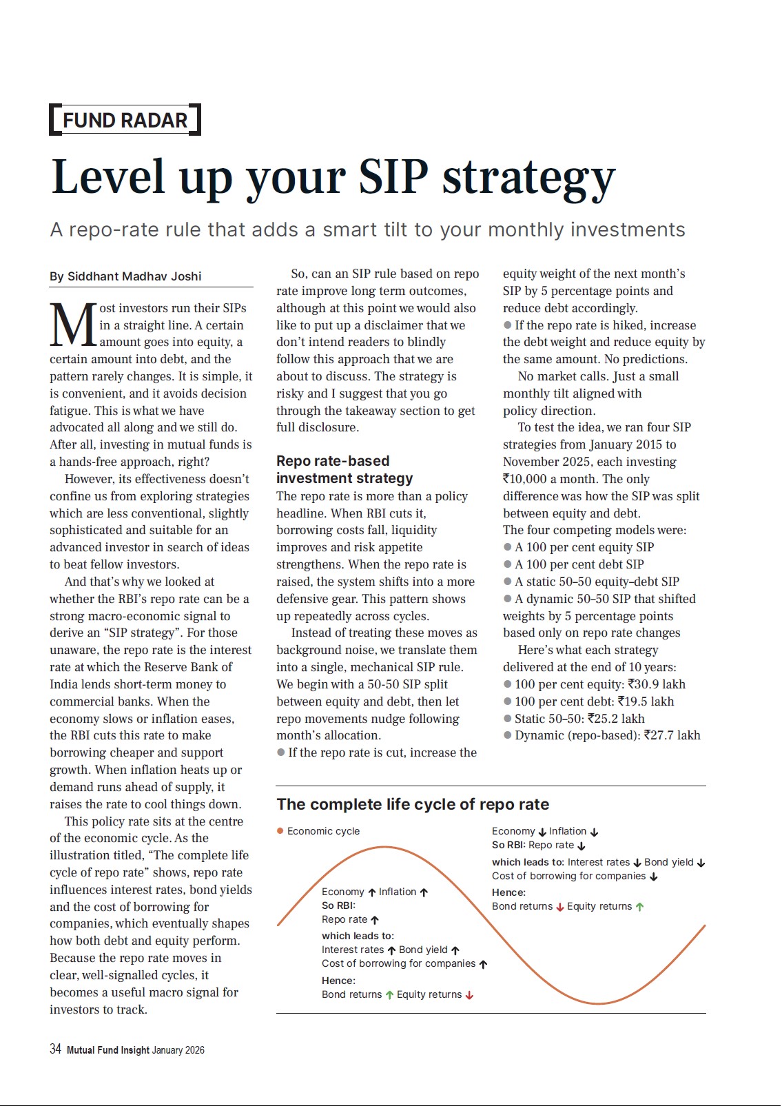 If the repo rate is cut, increase the equity weight of the next month’s SIP by 5 percentage points and reduce debt accordingly.