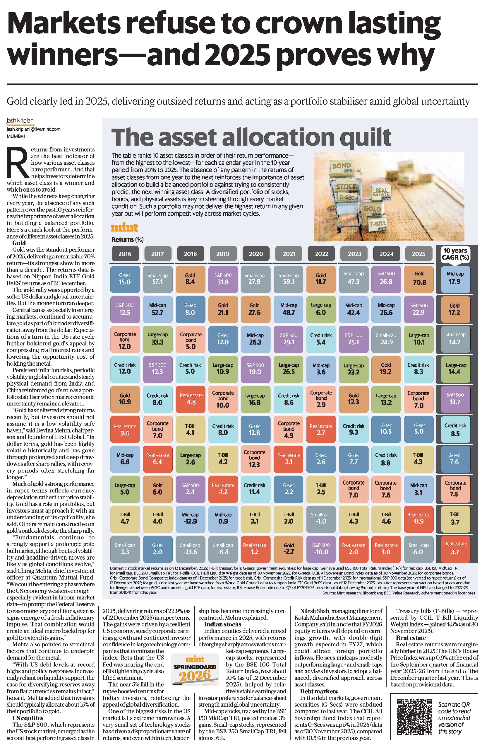 While the winners keep changing every year, the absence of any consistent pattern over the past 10 years reinforces the importance of asset allocation in building a balanced portfolio. Here’s a quick look at the performance of different asset classes in 2025.