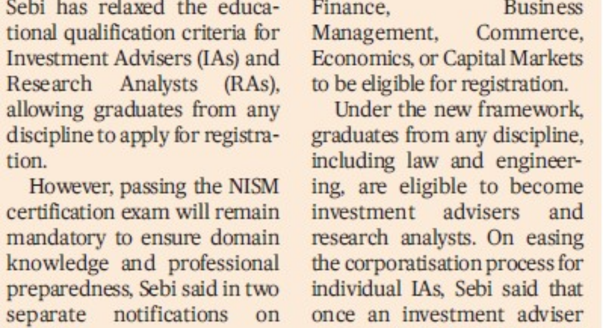 SEBI Eases Entry for Investment Advisers and Research Analysts: Graduates from Any Stream Now Eligible