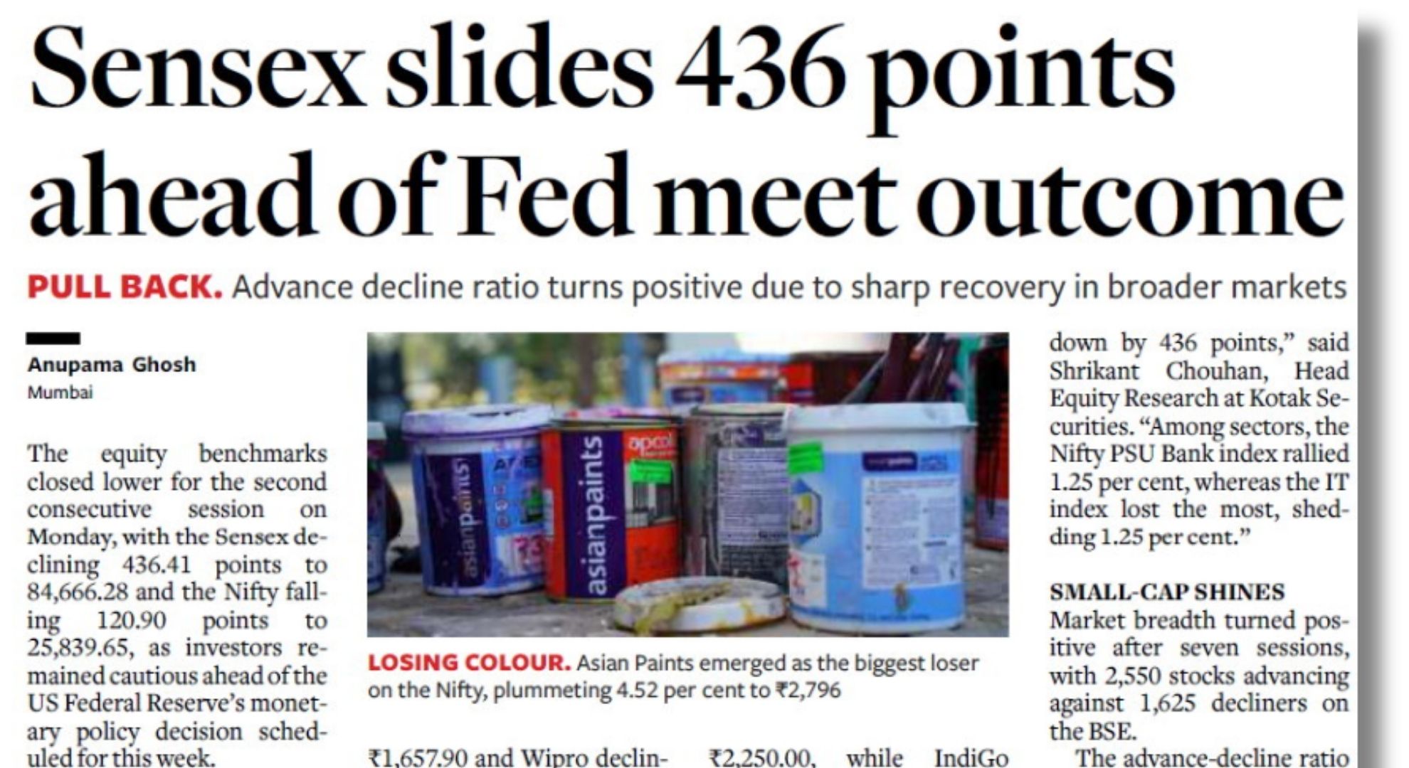 Market Recap: Sensex & Nifty Extend Losses as Investors Turn Cautious Ahead of Fed Policy