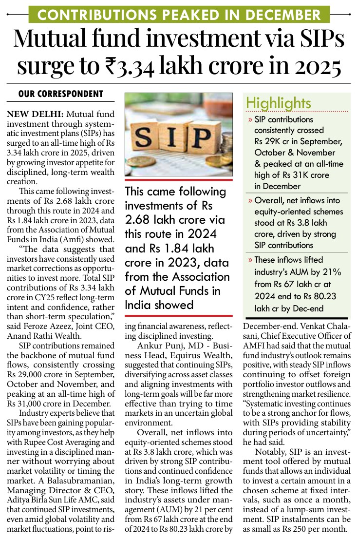 Mutual fund investment through systematic investment plans (SIPs) has surged to an all-time high of ₹3.34 lakh crore in 2025,...
