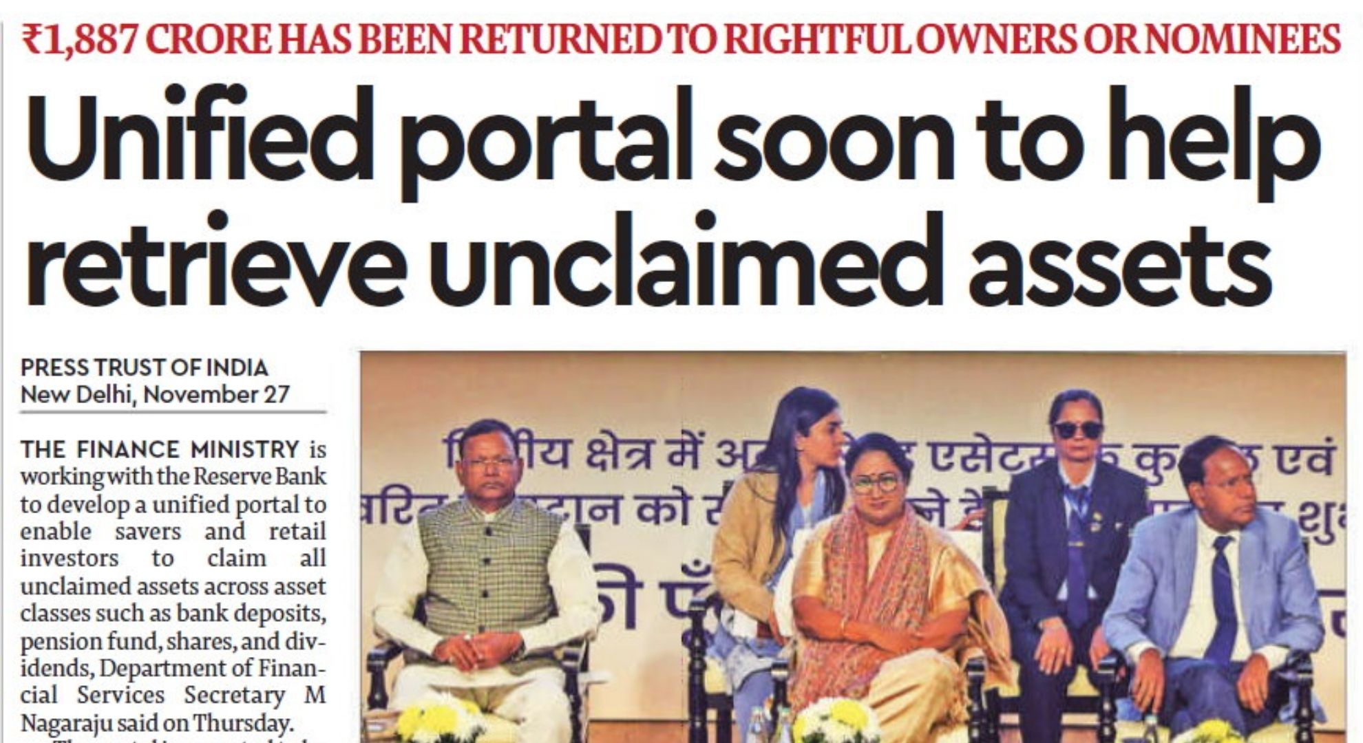 The initiative, announced by Department of Financial Services Secretary M Nagaraju, is part of a broader awareness campaign called Aapki Poonji Aapka Adhikar (Your Money Your Right) and aims to tackle the huge amount of idle unclaimed funds caused by a lack of awareness and outdated records.
