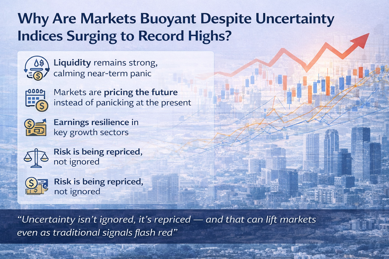 At a time when global uncertainty indices are touching record levels, equity markets continue to scale new highs. On the surface, this appears contradictory. Traditionally, rising geopolitical tensions, policy ambiguity, and macroeconomic risks tend to suppress investor sentiment. Yet, markets are displaying remarkable resilience.